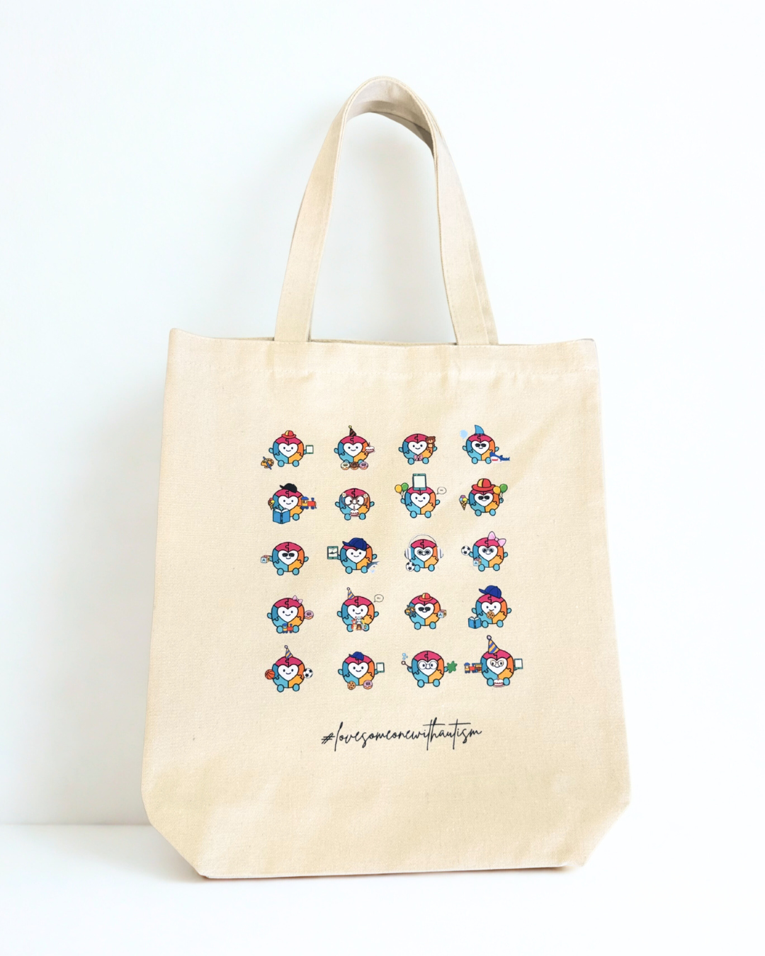 Each Hopey you see on this canvas bag was lovingly designed by our children using Canva. They were given a basic Hopey template, and from there, their creativity took over.